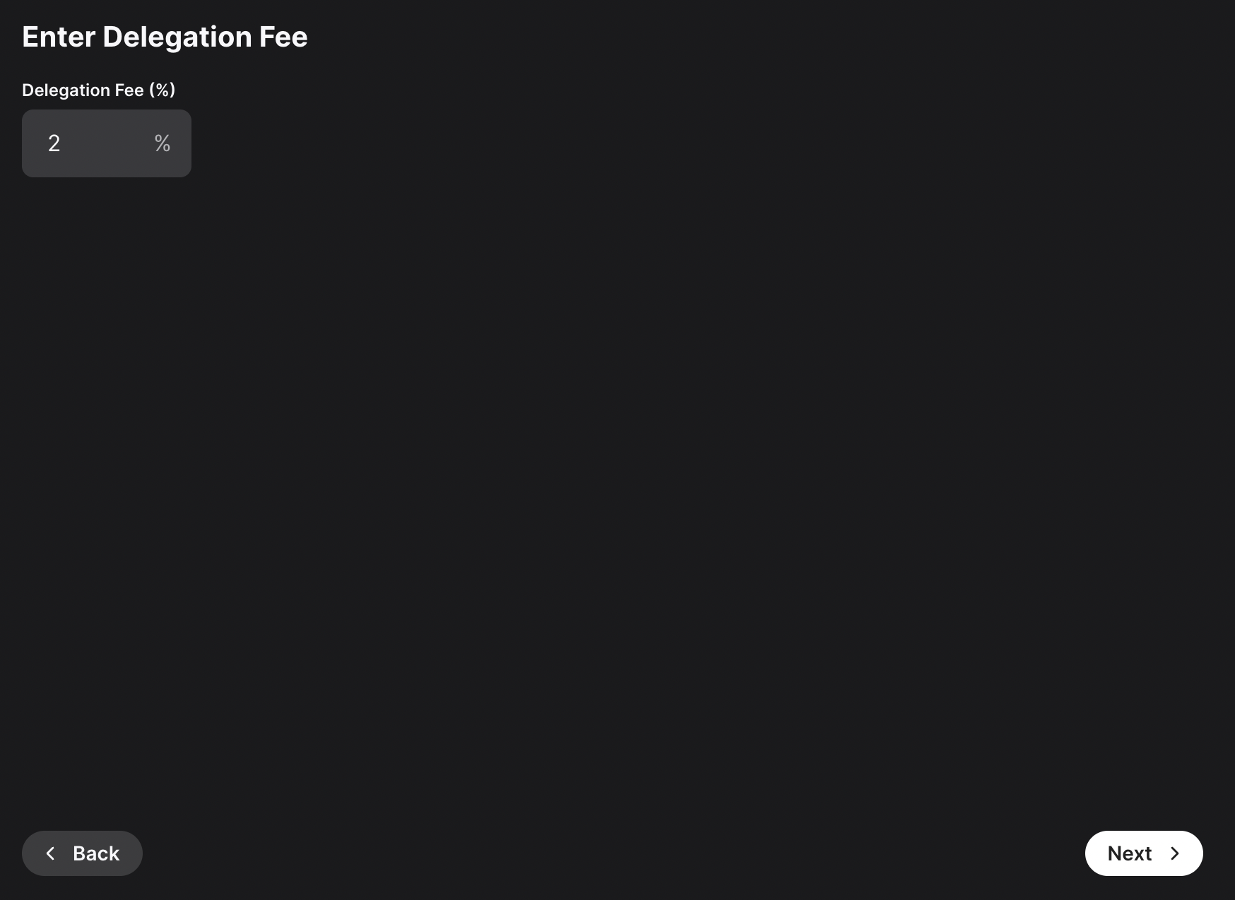 • Delegation Fee: You will claim this % of the rewards from the delegators on your node.